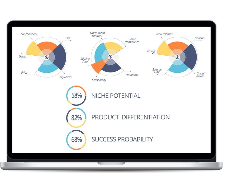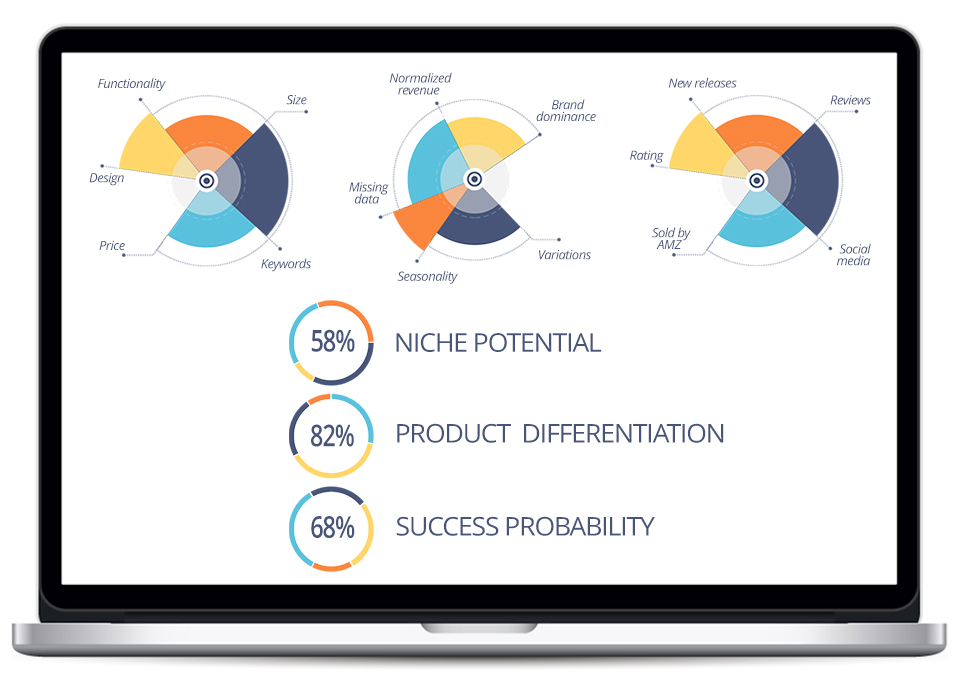The Success Probability Score is calculated based on the Niche Potential Score together with your specific product Differentiation Score, also using big-data analysis. Note: This calculation assumes familiarity with Amazon practices such as pricing, product quality, page conversion, running PPC, etc.